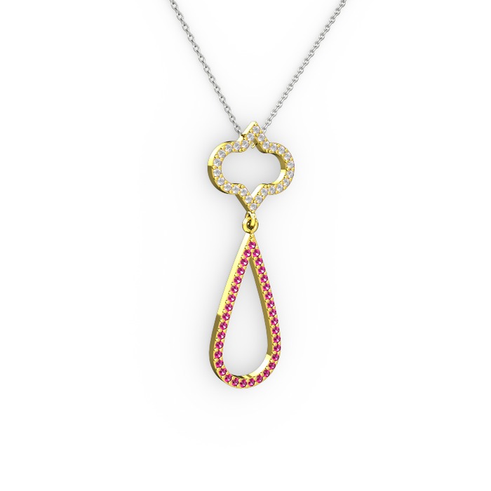 Beyaz zirkon ve rodolit garnet 8 ayar altın kolye (40 cm beyaz altın rolo zincir)