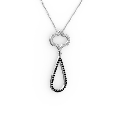 Beyaz zirkon ve siyah zirkon 925 ayar gümüş kolye (40 cm beyaz altın rolo zincir)