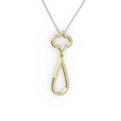 Beyaz zirkon ve swarovski 8 ayar altın kolye (40 cm beyaz altın rolo zincir)