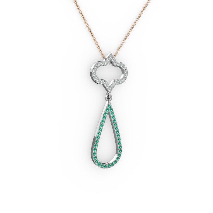 Beyaz zirkon ve yeşil kuvars 14 ayar beyaz altın kolye (40 cm gümüş rolo zincir)