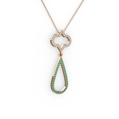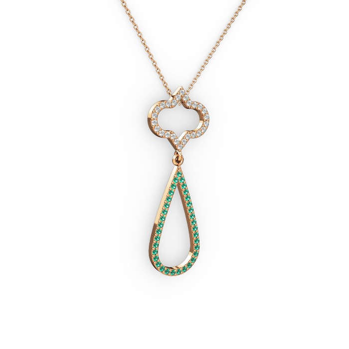 Beyaz zirkon ve yeşil kuvars 18 ayar rose altın kolye (40 cm rose altın rolo zincir)