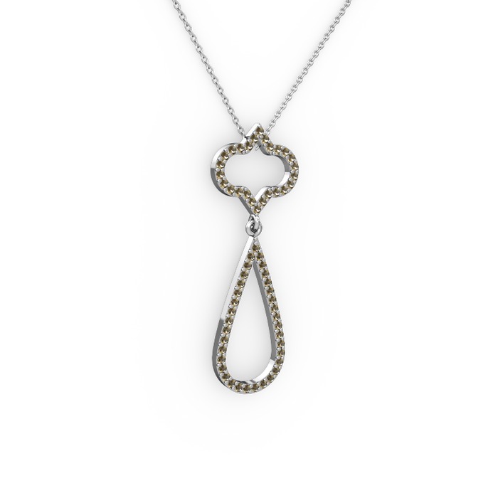 Dumanlı kuvars 18 ayar beyaz altın kolye (40 cm beyaz altın rolo zincir)