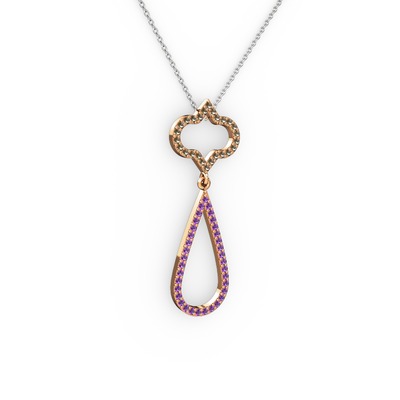 Dumanlı kuvars ve ametist 925 ayar rose altın kaplama gümüş kolye (40 cm beyaz altın rolo zincir)