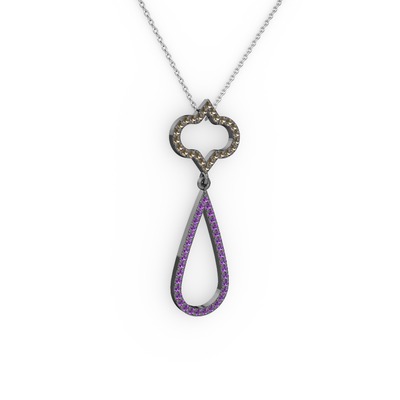Dumanlı kuvars ve ametist 925 ayar siyah rodyum kaplama gümüş kolye (40 cm beyaz altın rolo zincir)