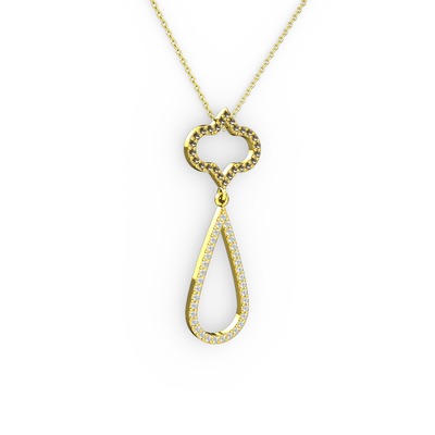 Dumanlı kuvars ve beyaz zirkon 18 ayar altın kolye (40 cm altın rolo zincir)