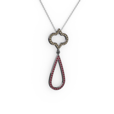 Dumanlı kuvars ve kök yakut 925 ayar siyah rodyum kaplama gümüş kolye (40 cm beyaz altın rolo zincir)