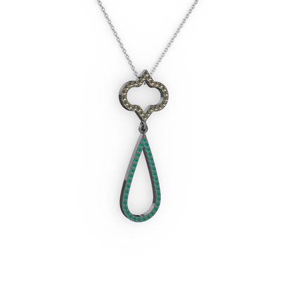 Dumanlı kuvars ve kök zümrüt 925 ayar siyah rodyum kaplama gümüş kolye (40 cm beyaz altın rolo zincir)