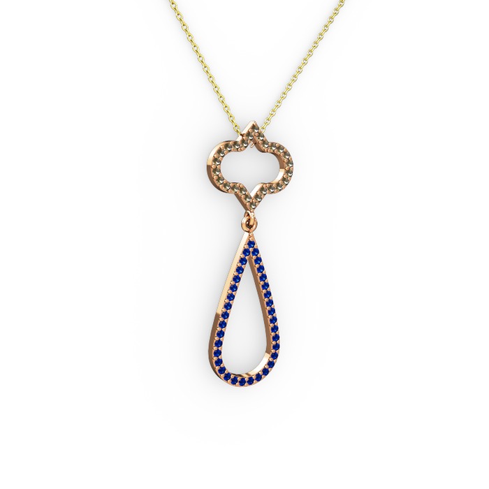 Dumanlı kuvars ve lab safir 18 ayar rose altın kolye (40 cm altın rolo zincir)