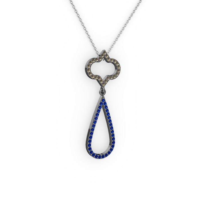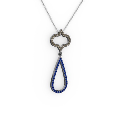 Dumanlı kuvars ve lab safir 925 ayar siyah rodyum kaplama gümüş kolye (40 cm beyaz altın rolo zincir)