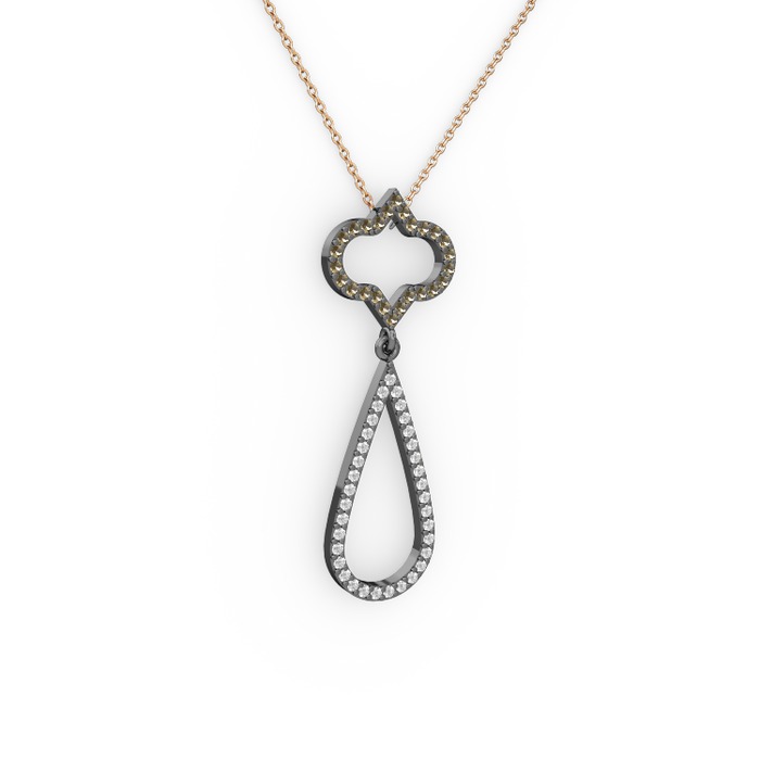 Dumanlı kuvars ve pırlanta 925 ayar siyah rodyum kaplama gümüş kolye (0.324 karat, 40 cm rose altın rolo zincir)