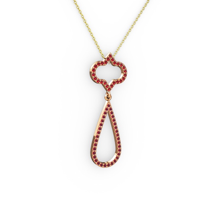 Garnet ve kök yakut 14 ayar rose altın kolye (40 cm altın rolo zincir)