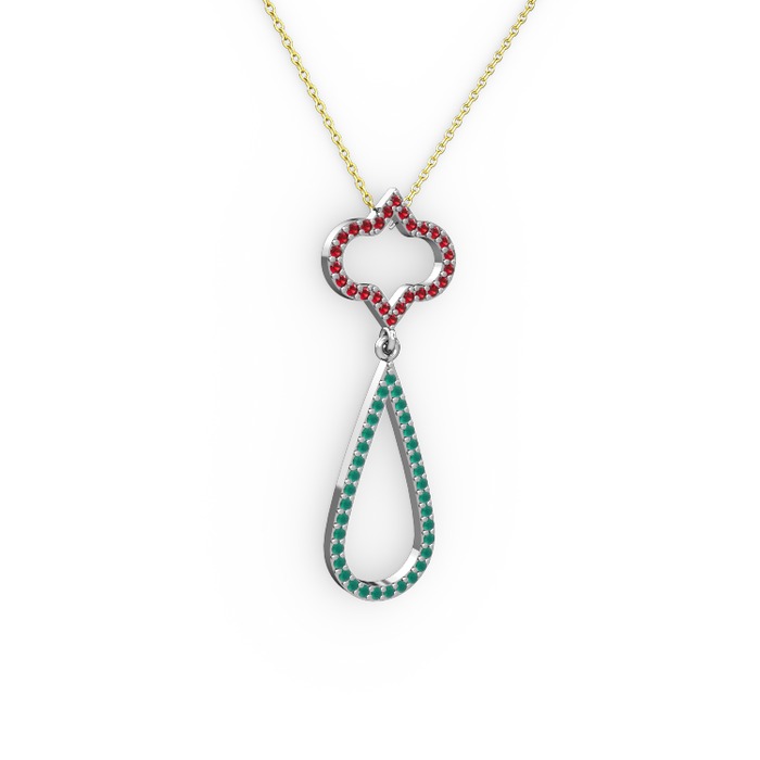 Garnet ve kök zümrüt 14 ayar beyaz altın kolye (40 cm altın rolo zincir)