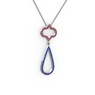 Garnet ve lab safir 14 ayar beyaz altın kolye (40 cm gümüş rolo zincir)