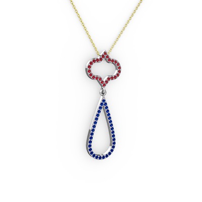 Garnet ve lab safir 8 ayar beyaz altın kolye (40 cm altın rolo zincir)