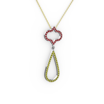 Garnet ve peridot 14 ayar beyaz altın kolye (40 cm altın rolo zincir)