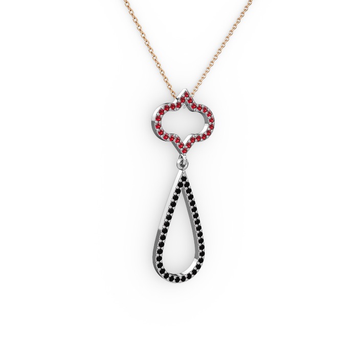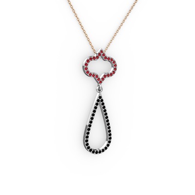 Garnet ve siyah zirkon 8 ayar beyaz altın kolye (40 cm rose altın rolo zincir)
