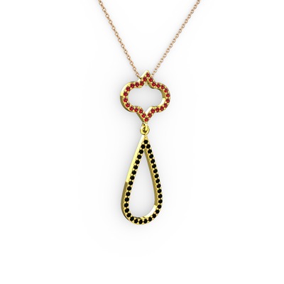 Garnet ve siyah zirkon 925 ayar altın kaplama gümüş kolye (40 cm rose altın rolo zincir)