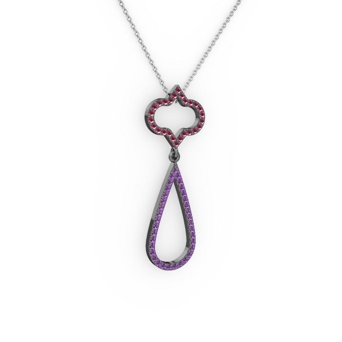 Kök yakut ve ametist 925 ayar siyah rodyum kaplama gümüş kolye (40 cm beyaz altın rolo zincir)