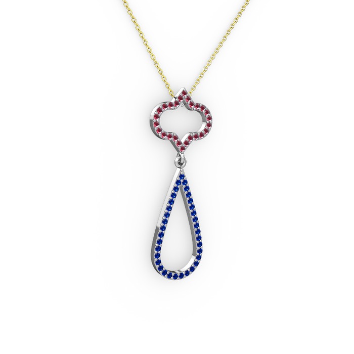 Kök yakut ve lab safir 18 ayar beyaz altın kolye (40 cm altın rolo zincir)