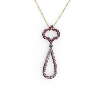 Kök yakut ve pembe kuvars 925 ayar siyah rodyum kaplama gümüş kolye (40 cm altın rolo zincir)