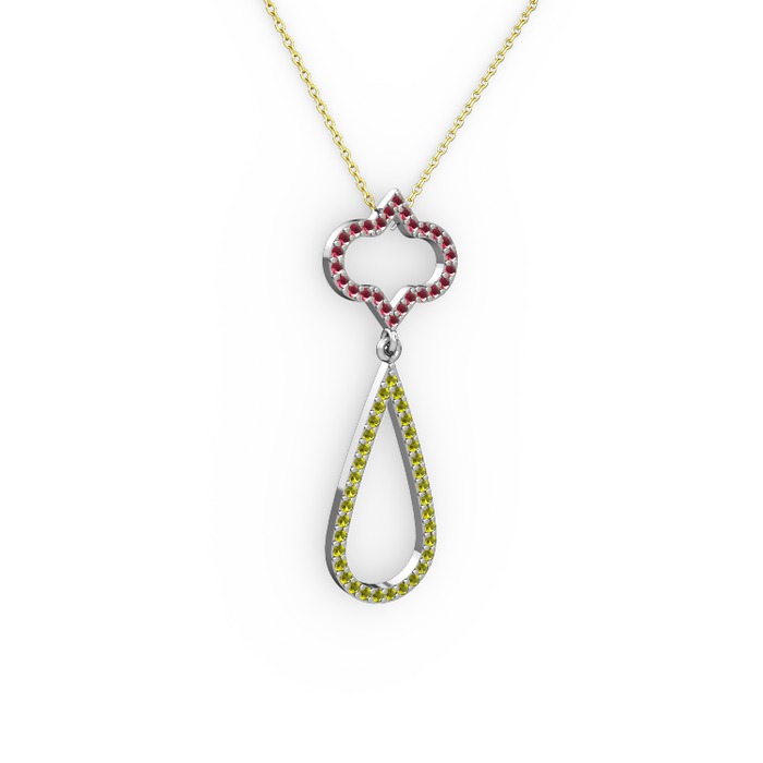 Kök yakut ve peridot 18 ayar beyaz altın kolye (40 cm altın rolo zincir)