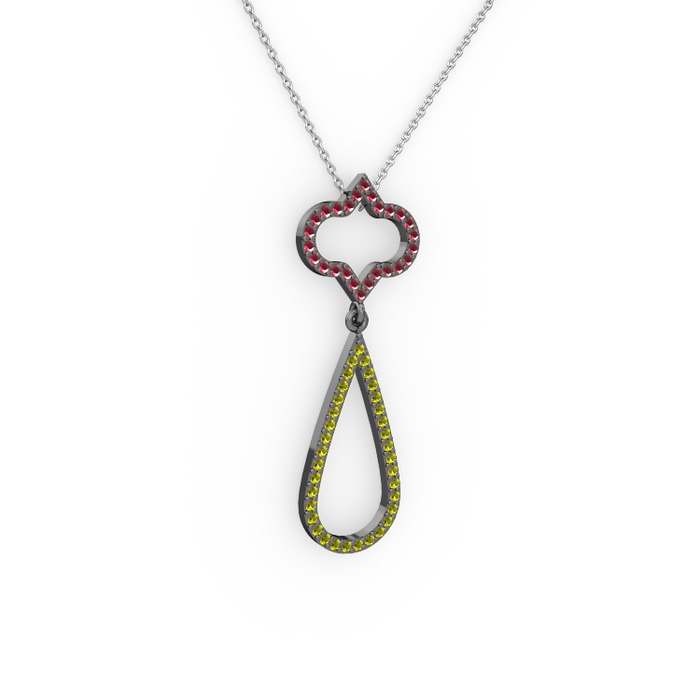 Kök yakut ve peridot 925 ayar siyah rodyum kaplama gümüş kolye (40 cm beyaz altın rolo zincir)