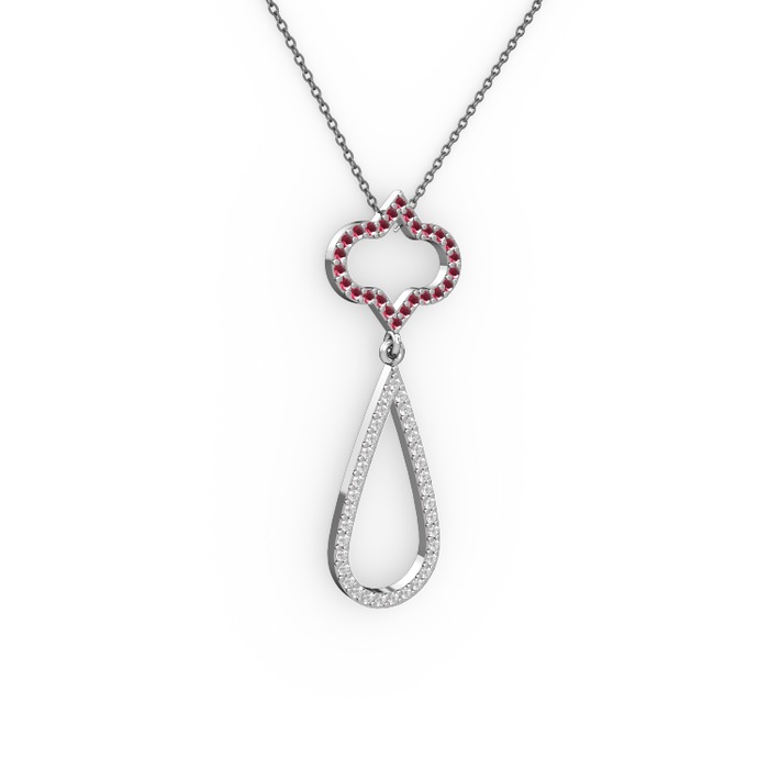 Kök yakut ve pırlanta 18 ayar beyaz altın kolye (0.324 karat, 40 cm gümüş rolo zincir)