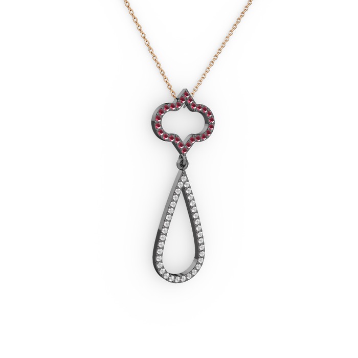 Kök yakut ve pırlanta 925 ayar siyah rodyum kaplama gümüş kolye (0.324 karat, 40 cm rose altın rolo zincir)