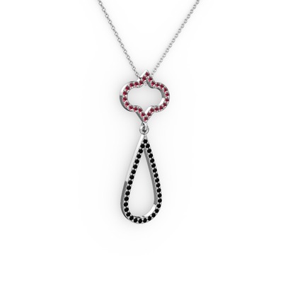 Kök yakut ve siyah zirkon 14 ayar beyaz altın kolye (40 cm beyaz altın rolo zincir)