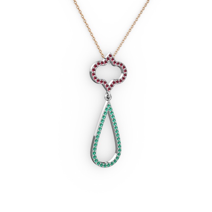 Kök yakut ve yeşil kuvars 925 ayar gümüş kolye (40 cm rose altın rolo zincir)