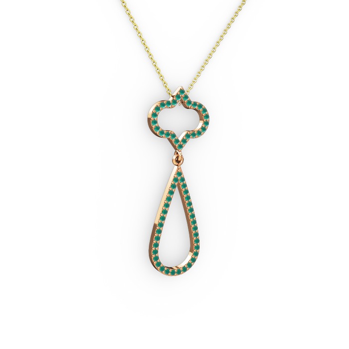 Kök zümrüt 14 ayar rose altın kolye (40 cm altın rolo zincir)