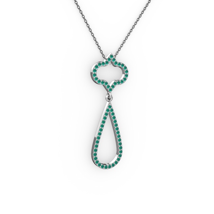Kök zümrüt 18 ayar beyaz altın kolye (40 cm gümüş rolo zincir)