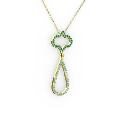 Kök zümrüt ve akuamarin 18 ayar altın kolye (40 cm altın rolo zincir)