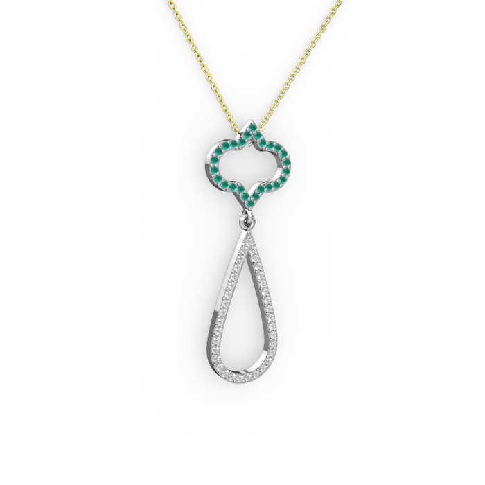 Kök zümrüt ve beyaz zirkon 925 ayar gümüş kolye (40 cm altın rolo zincir)