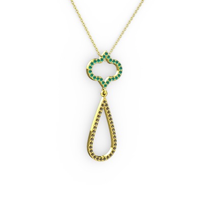 Kök zümrüt ve dumanlı kuvars 8 ayar altın kolye (40 cm altın rolo zincir)