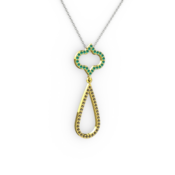 Kök zümrüt ve dumanlı kuvars 925 ayar altın kaplama gümüş kolye (40 cm beyaz altın rolo zincir)