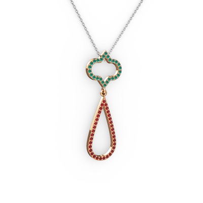 Kök zümrüt ve garnet 18 ayar rose altın kolye (40 cm beyaz altın rolo zincir)