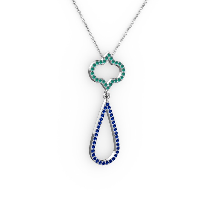 Kök zümrüt ve lab safir 14 ayar beyaz altın kolye (40 cm gümüş rolo zincir)