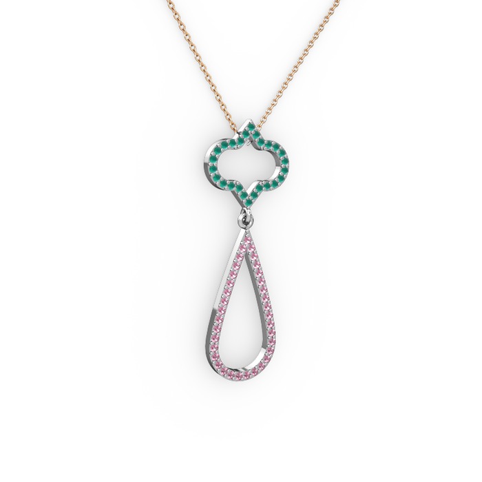 Kök zümrüt ve pembe kuvars 925 ayar gümüş kolye (40 cm gümüş rolo zincir)