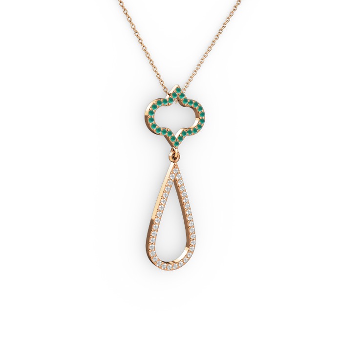 Kök zümrüt ve pırlanta 925 ayar rose altın kaplama gümüş kolye (0.324 karat, 40 cm rose altın rolo zincir)