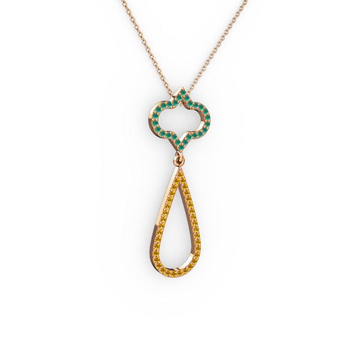 Kök zümrüt ve sitrin 18 ayar rose altın kolye (40 cm rose altın rolo zincir)