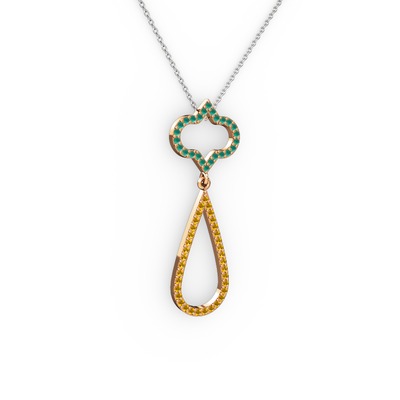Kök zümrüt ve sitrin 925 ayar rose altın kaplama gümüş kolye (40 cm beyaz altın rolo zincir)