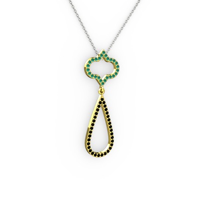 Kök zümrüt ve siyah zirkon 14 ayar altın kolye (40 cm beyaz altın rolo zincir)