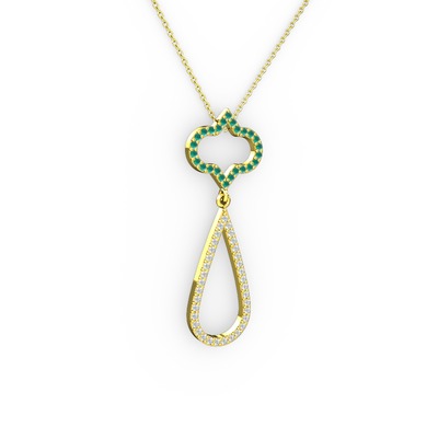 Kök zümrüt ve swarovski 8 ayar altın kolye (40 cm altın rolo zincir)