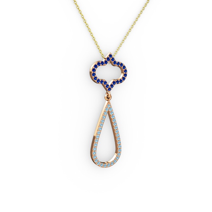 Lab safir ve akuamarin 14 ayar rose altın kolye (40 cm altın rolo zincir)