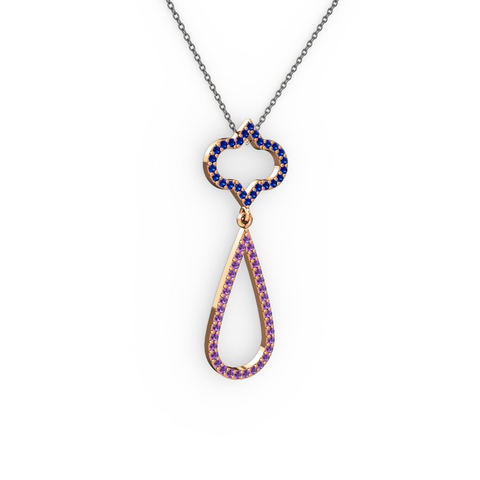 Lab safir ve ametist 14 ayar rose altın kolye (40 cm gümüş rolo zincir)