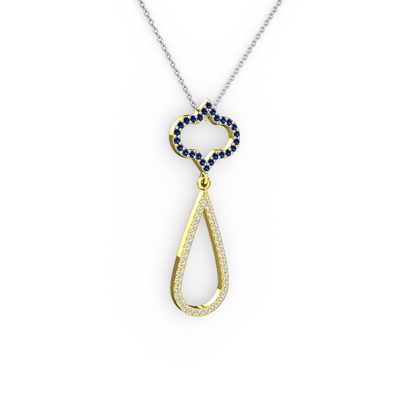 Lab safir ve beyaz zirkon 14 ayar altın kolye (40 cm beyaz altın rolo zincir)