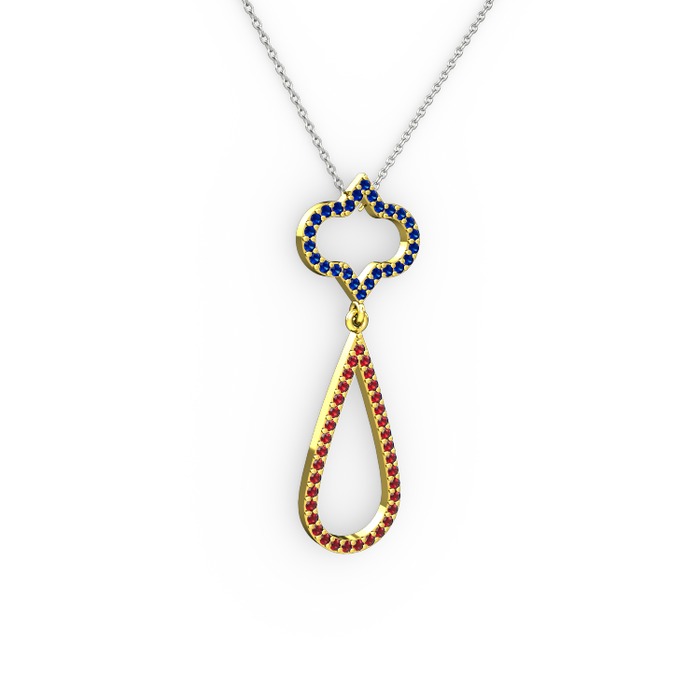 Lab safir ve garnet 14 ayar altın kolye (40 cm beyaz altın rolo zincir)