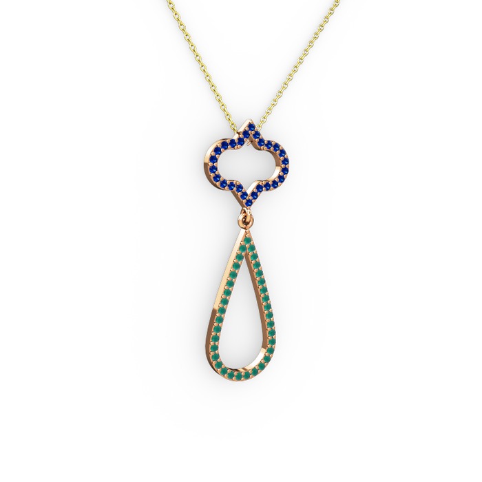 Lab safir ve kök zümrüt 18 ayar rose altın kolye (40 cm altın rolo zincir)