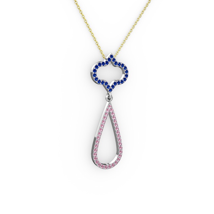 Lab safir ve pembe kuvars 14 ayar beyaz altın kolye (40 cm altın rolo zincir)